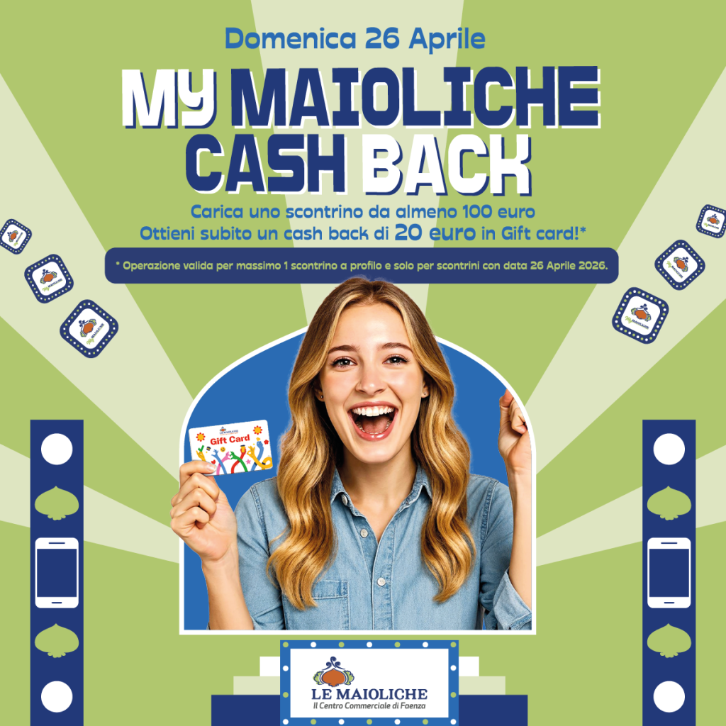 Fai acquisti nei negozi del centro, carica uno scontrino da almeno 100 euro tramite l’app My Maioliche e ottieni subito una gift card da 20 euro per il tuo shopping!