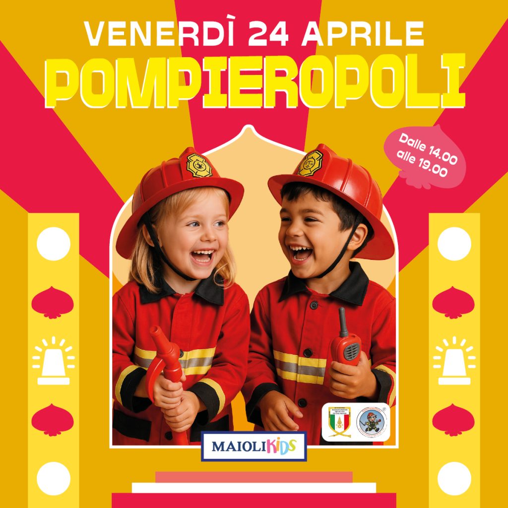 Venerdì 24 aprile arriva a Le Maioliche di Faenza Pompieropoli, l’evento dedicato ai più piccoli che trasforma il pomeriggio in un’esperienza piena di gioco, movimento e divertimento.Dalle 14.00 alle 19.00 i bambini potranno partecipare a percorsi e attività ludiche accanto ai Vigili del Fuoco, vivendo un’avventura speciale pensata per divertirsi e mettersi alla prova.