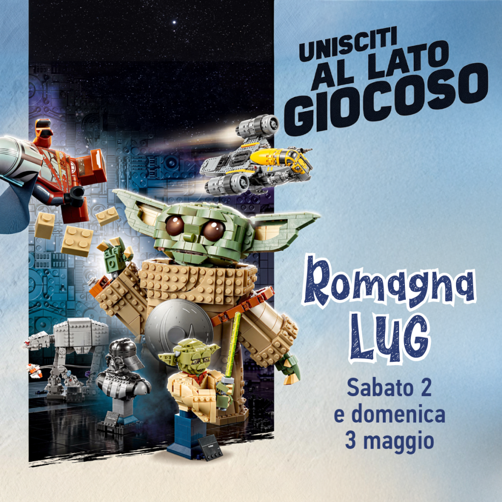 Sabato 2 e domenica 3 maggio Romagna Lug ti aspetta dalle ore 16:00 alle 19:00 con un corner dedicato a Star Wars: set a tema, gadget e unboxing. Unisciti al lato giocoso e preparati a un divertimento stellare.